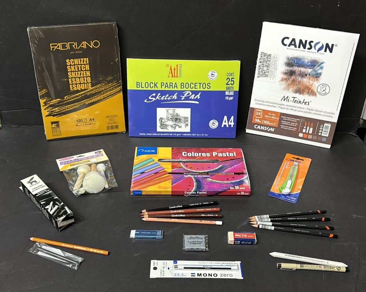 - Varios lápices de grafito 2H, HB, 6B, 8-10B