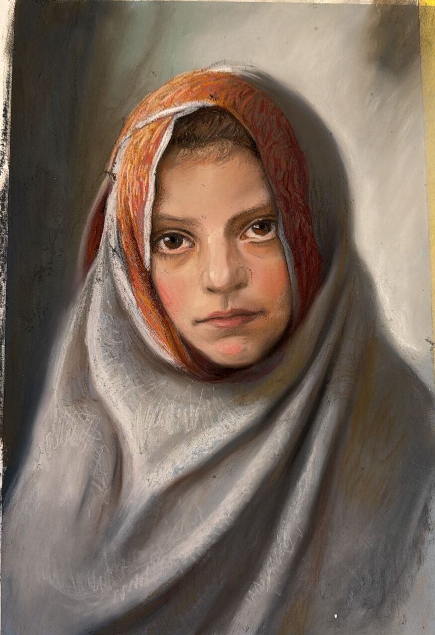 Retrato de niña al pastel estilo Carriera