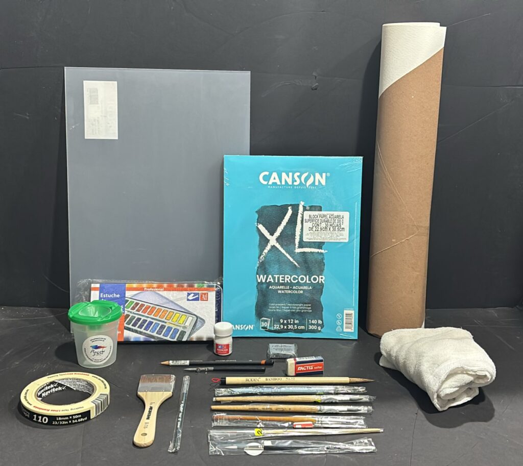 - Papel de tamaño 22*30 para acuarela (marcas Cansón, Fabriano, Arches, etc, de 300g)